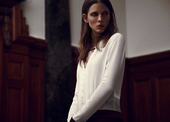 This look (and yes, this week does seem to be about looks and inspirations) is what I could consider a perfect choice as it will be appropriate practically anywhere… Whether it’s a party or dinner invitation, a theatre ticket or a gallery outing, the beautiful semi-sheer white silk and burgundy velvet blouse combined with a pair of cigarette trousers and glossy patent leather strappy pumps will make any woman look elegant, sophisticated and modern.